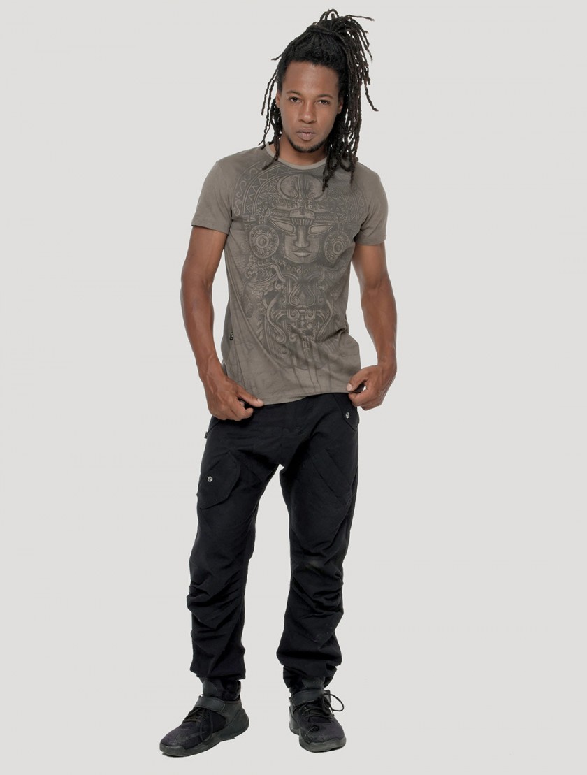 * All-over "washed" look print design, inspired by ancient Maya artwork.